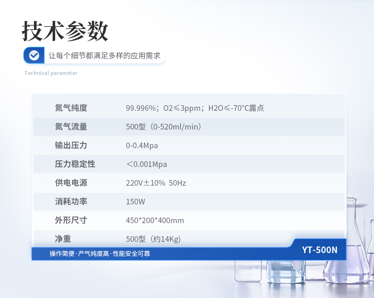 | 輸出流量:0-300ml/min | 輸出壓力:0-0.4MPa | 壓力穩定性:<0.2% | 氮氣純度:>99.999% | 液罐容積:2升 | 水質要求:電阻率≥1MΩ/cm | 供電電源:220V±10%,50-60Hz | 使用環境溫度:0-40℃ | 使用環境濕度:<85% |