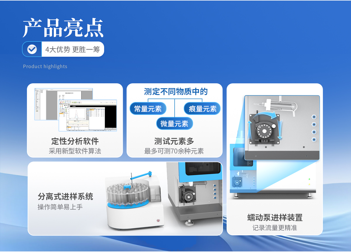 1、進樣系統 1.1 加長型霧室,保證高靈敏度的情況下有效降低背景噪聲,低記憶效應。 1.2 **同心圓霧化器,霧化效率高、重復性好,記憶效應弱,可直接自吸進樣。 1.3 快速拆卸式炬管,搭配自主研發的炬管工裝,可一秒實現炬管的準確定位,減少因更換 炬管帶來的位置誤差影響測試性能。 1.4 蠕動泵為 5 通道 16 滾軸全自動設計,蠕動泵轉速連續可調。確保穩定進樣的同時,可 支持進樣、排廢、在線內標和其他試劑進樣管(氫化物發生器)同時運行。 1.5 分腔體式進樣系統,炬管和霧室在不同的空間內,減少炬管高溫對霧化的影響,也可以 直接觀察樣品的進行,便于實時排除異常情況。 1.6 多種類型的霧化器、霧室及炬管可選,可實現有機、高鹽、高靈敏、耐 HF 酸等不同進 樣需求,方便更換與維護。 1.7 集成氣路全自動控制,采用精密質量流量控制器控制多路氣體流量,精度 0.01L/min。 1.8 缺氣氣保護功能,儀器在氣源耗盡的情況下自動熄火,并通過嗡鳴器實時發出報警聲音。 1.9 火焰視頻監測,儀器配置了靈敏度高的火焰傳感系統,以及可視化視頻監測攝像頭, 可以實時觀測燃燒室火焰狀態,并在熄火時自動關閉射頻電源,保護儀器重要部件。 1.10 可視化的儀器運行狀態監控模塊,可對儀器各組成部件的運行情況進行監測,判斷故 障原因,便于各部件的正常運行。