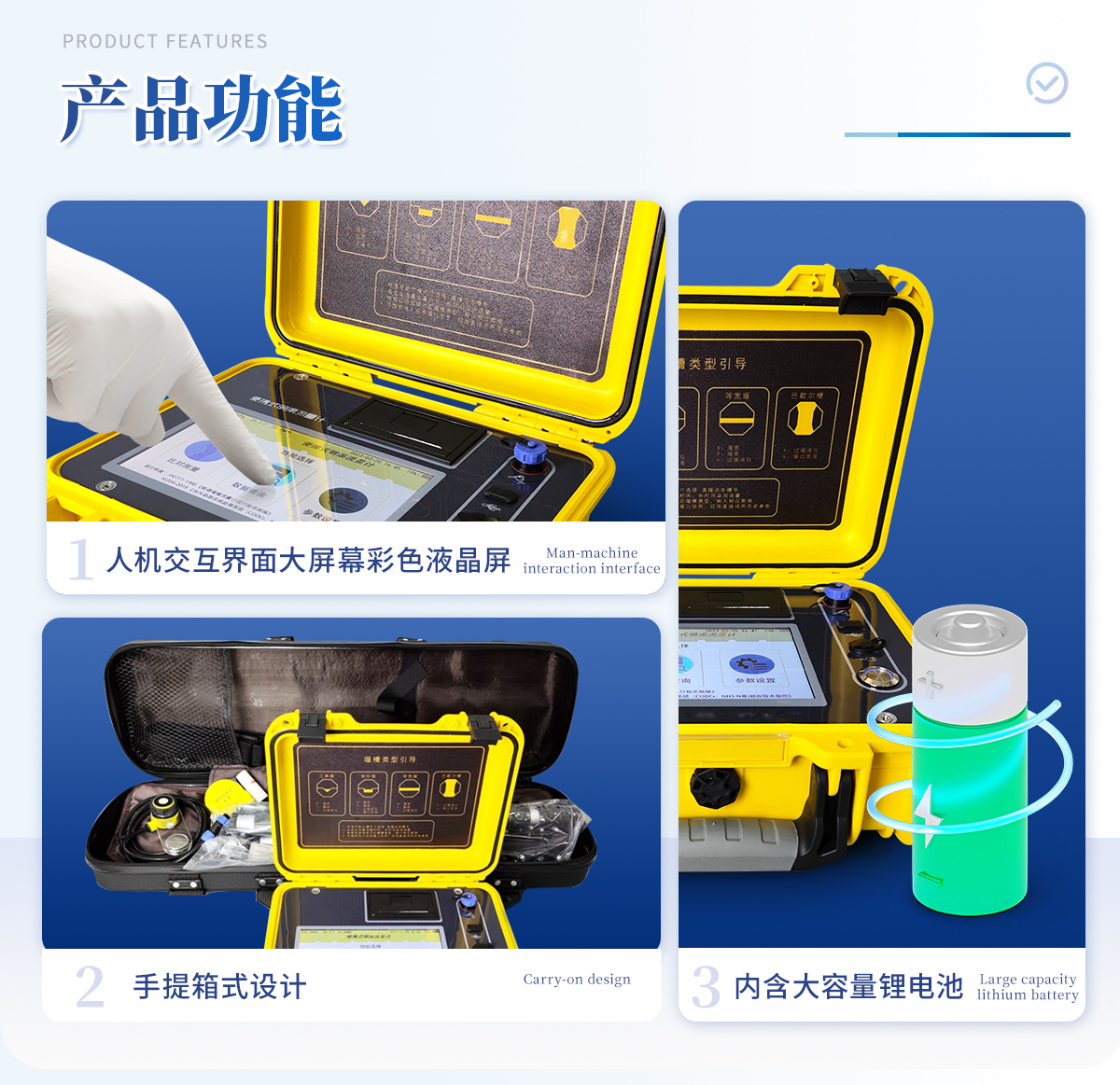手提箱式設(shè)計(jì),整機(jī)重量輕,方便用戶攜帶
