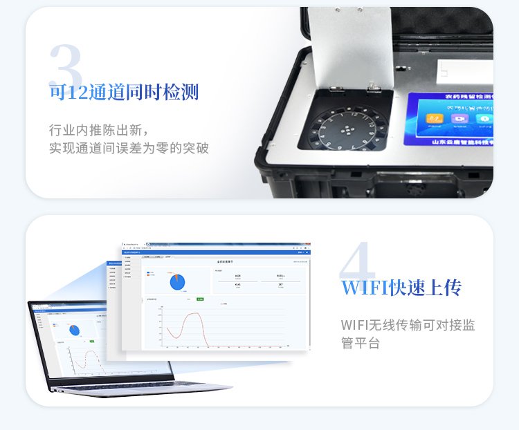 3、儀器帶有監(jiān)管平臺(tái),數(shù)據(jù)可局域網(wǎng)和互聯(lián)網(wǎng)數(shù)據(jù)上傳,檢測結(jié)果直接傳至食品安全監(jiān)管平臺(tái)。進(jìn)行區(qū)域食品安全監(jiān)管及大數(shù)據(jù)分析處理與數(shù)據(jù)統(tǒng)計(jì),檢測區(qū)域食品安全長短期動(dòng)態(tài),達(dá)到食品安全問題預(yù)估、預(yù)警 。