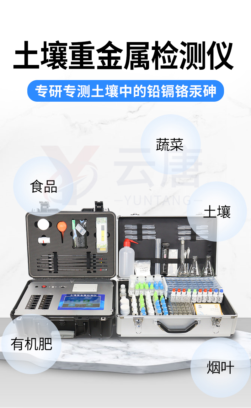 可對土壤、肥料、作物、蔬菜、水果、水質、食品等樣品中的砷、鉛、鎘、鉻、汞、鐵、鋁、鋅、錳、銅等進行快速聯合測定。