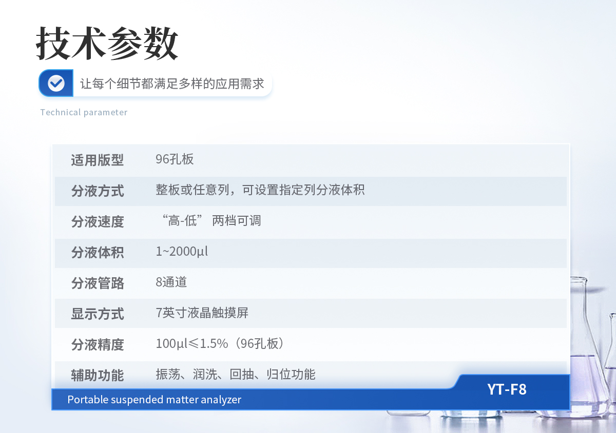 適用版型:96孔板 分液方式:整板或任意列,可設置指定列分液體積 分液速度:“高-低” 兩檔可調(diào) 分液體積:1~2000μl 分液管路:8通道 顯示方式:7英寸液晶觸摸屏 分液精度:100μl≤1.5%(96孔板) 輔助功能:振蕩、潤洗、回抽、歸位功能