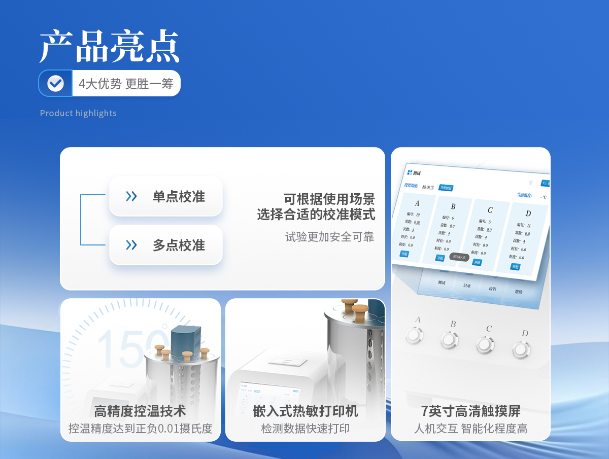 測試方法:品氏、烏氏兩種。 溫度范圍:室溫~+150°C精度±0.01°C。 溫度傳感器:德國A級Pt100不銹鋼探頭,內置溫度校正,檢測結果可靠。 加熱方式:電加熱單元,**加熱功率1600W。 顯示:7寸工業彩色觸摸屏。 溫度校正:單點校準、多點校準可選。 數據存儲:10000組測試結果。 尺寸:530*310*232.5(mm) 工作環境: 溫 度:10-35℃ 濕 度:相對濕度不大于50% 工作電壓:220V 50HZ