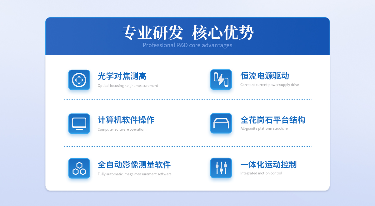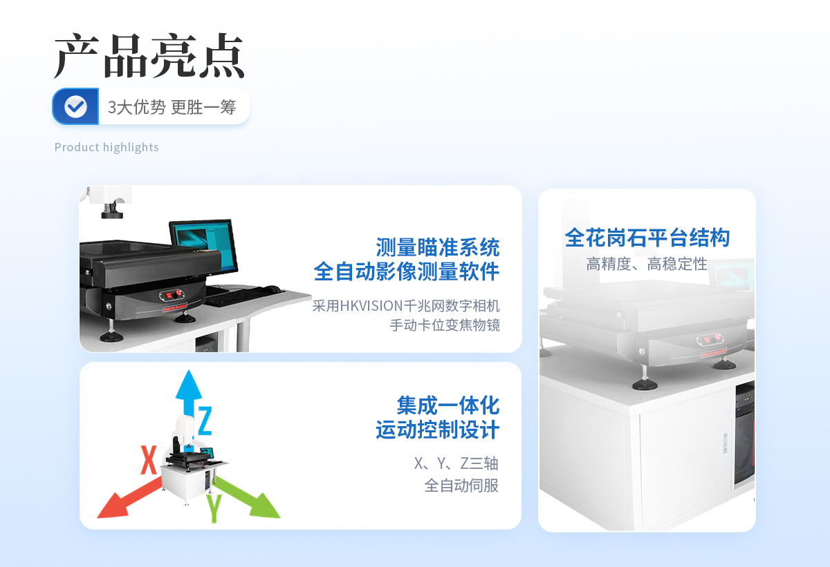 | ? 三軸均采用臺(tái)灣LEPIN高精度直線導(dǎo)軌、精密級(jí)無牙螺桿傳動(dòng),噪音低振動(dòng)小,動(dòng)態(tài)幾何誤差變形*小。 | ? 采用優(yōu)質(zhì)花崗巖大理石底座、立柱、工作臺(tái),具有良好的溫度穩(wěn)定性、抗實(shí)效變形能力 。 | ? 有限元結(jié)構(gòu)分析及優(yōu)化結(jié)構(gòu)設(shè)計(jì)為該系列保證了系統(tǒng)整體的高精度及高穩(wěn)定性。 | ? 采用集成式多功能控制器,整體機(jī)臺(tái)故障率低,售后更方便 。 | ? 配備紅點(diǎn)激光定位裝置,方便快捷找準(zhǔn)測(cè)量位置 。 |